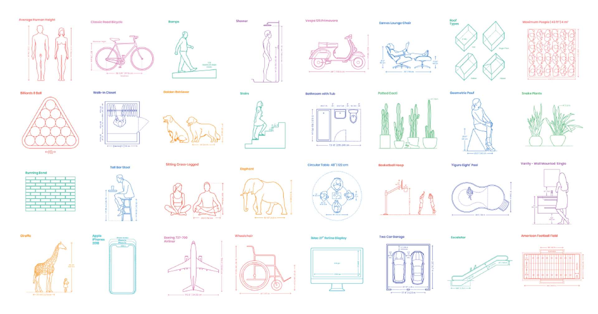 Ever wondered what the standard dimensions are for a random everyday object? Wonder no more with this growing database of Dimensioned Drawings.